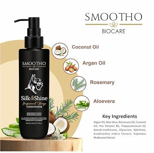 Smootho Biocare Silk & Shine Professional Range Pet Conditioner is specially formulated to keep your furry friend’s coat soft, shiny, and manageable. Infused with natural oils and soothing botanicals, this conditioner helps detangle, reduce static and promote a healthy lustrous coat. It is perfect for all fur types and safe for frequent use.